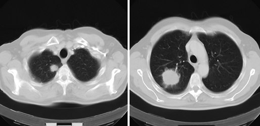 КТ (особенно спиральная) позволяет проводить значительно более раннюю и точную диагностику метастазов, особенно субплевральной локализации и размерами менее 0,5 см. Технология многослойной КТ позволяет исследовать срезы легкого толщиной 1–2,5 мм за одну задержку дыхания, открывая новые перспективы.