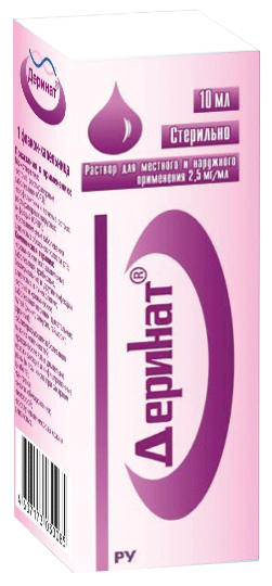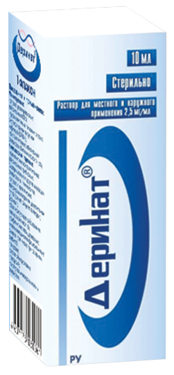 | Деринат®, раствор для местного и наружного применения, 0.25%, флакон темного стекла 10 мл - коробка (коробочка) Производитель: Техномедсервис (Россия), | ||