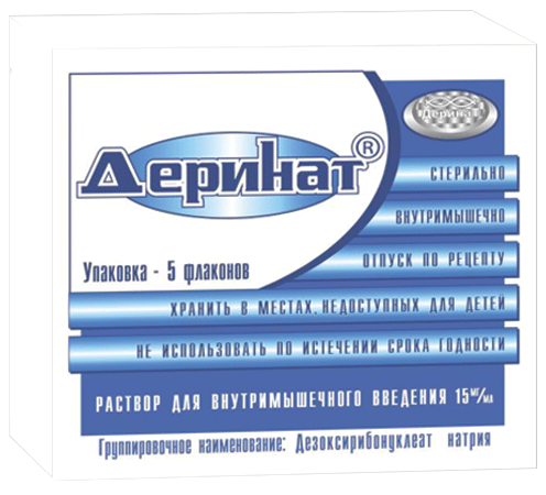 | Деринат®, раствор для внутримышечного введения, 15 мг/мл, №5 - флакон 5 мл (5) - упаковка контурная пластиковая (поддоны) - пачка картонная Производитель: Техномедсервис (Россия), | ||