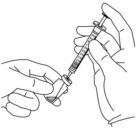 1. Удаляют пластиковый колпачок и дезинфицируют внешнюю часть резиновой пробки флакона.
