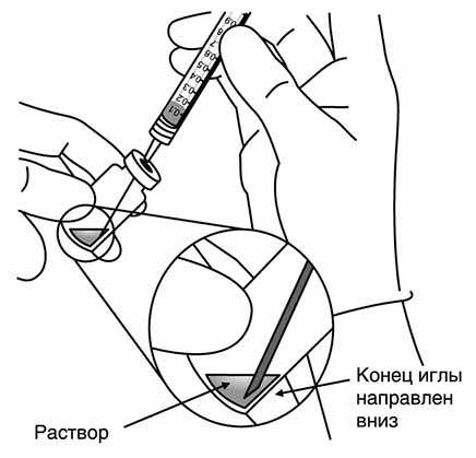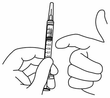 8. Держа шприц иглой вверх, проверяют раствор на наличие пузырьков. Если они имеются, осторожно встряхивают шприц пальцем до тех пор, пока все пузырьки не поднимутся наверх.