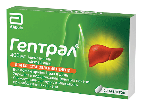 Гептрал®, таблетки, покрытые кишечнорастворимой оболочкой, 400 мг, №20 - 10 шт. - блистер (2) - пачка картонная Производитель: Эбботт С.р.Л. (Италия),