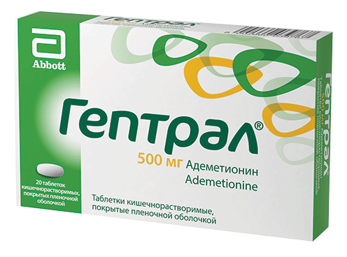 Гептрал®, таблетки, покрытые кишечнорастворимой оболочкой, 500 мг, №20 - 10 шт. - блистер (2) - пачка картонная Производитель: ЭббВи С.р.Л. (Италия),