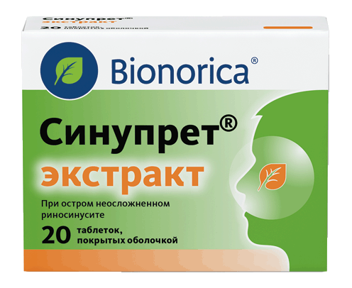 Синупрет® экстракт, таблетки, покрытые оболочкой, №20 - 10 шт. - блистер (2) - пачка картонная Производитель: Роттендорф Фарма (Германия), упаковщик: Бионорика Фармасьютикалс (Россия) | ||