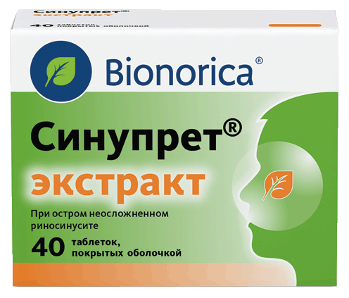Синупрет® экстракт, таблетки, покрытые оболочкой, №40 - 10 шт. - блистер (4) - пачка картонная Производитель: Роттендорф Фарма (Германия), упаковщик: Бионорика Фармасьютикалс (Россия) | ||