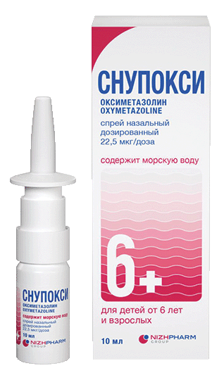 | СНУПОКСИ, спрей назальный дозированный, 22.5 мкг/доза, флакон 10 мл (164 доз) - пачка картонная Производитель: НИЖФАРМ АО (Россия), | ||