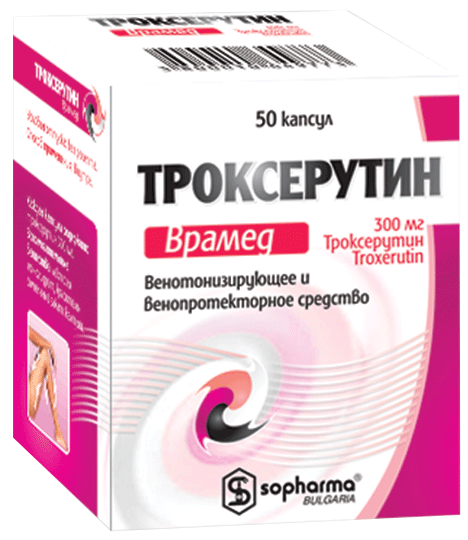 | Троксерутин Врамед, капсулы, 300 мг, №50 - 10 шт. - блистер (5) - пачка картонная Производитель: Софарма АО (Болгария), | ||