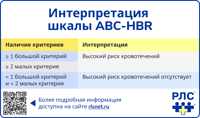 Наличие по меньшей мере одного большого критерия или двух малых критериев свидетельствует о высоком риске развития кровотечений у пациента.