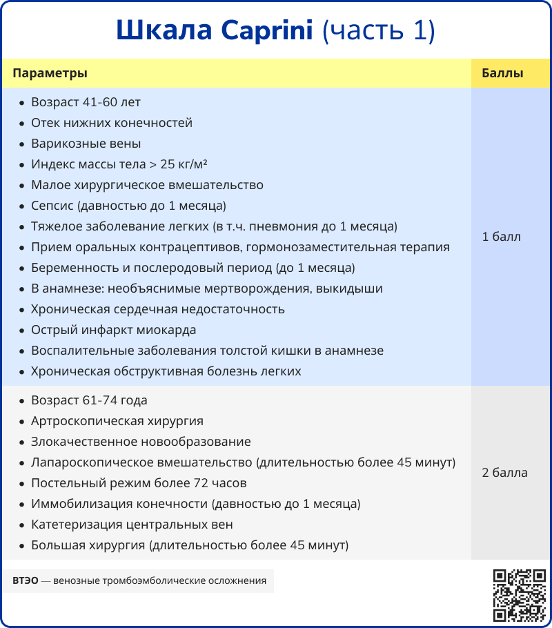 Шкала Каприни широко используется в клинической практике для определения необходимости и объема тромбопрофилактики у хирургических пациентов, позволяя эффективно снижать риск тромбоэмболических осложнений.