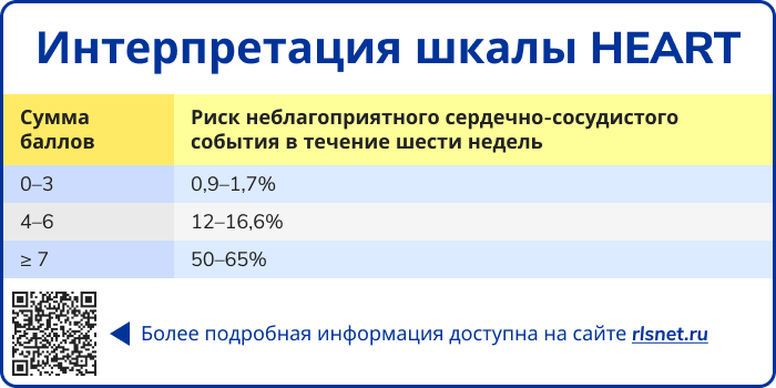 | Сумма баллов | Риск неблагоприятного сердечно-сосудистого события в течение шести недель |