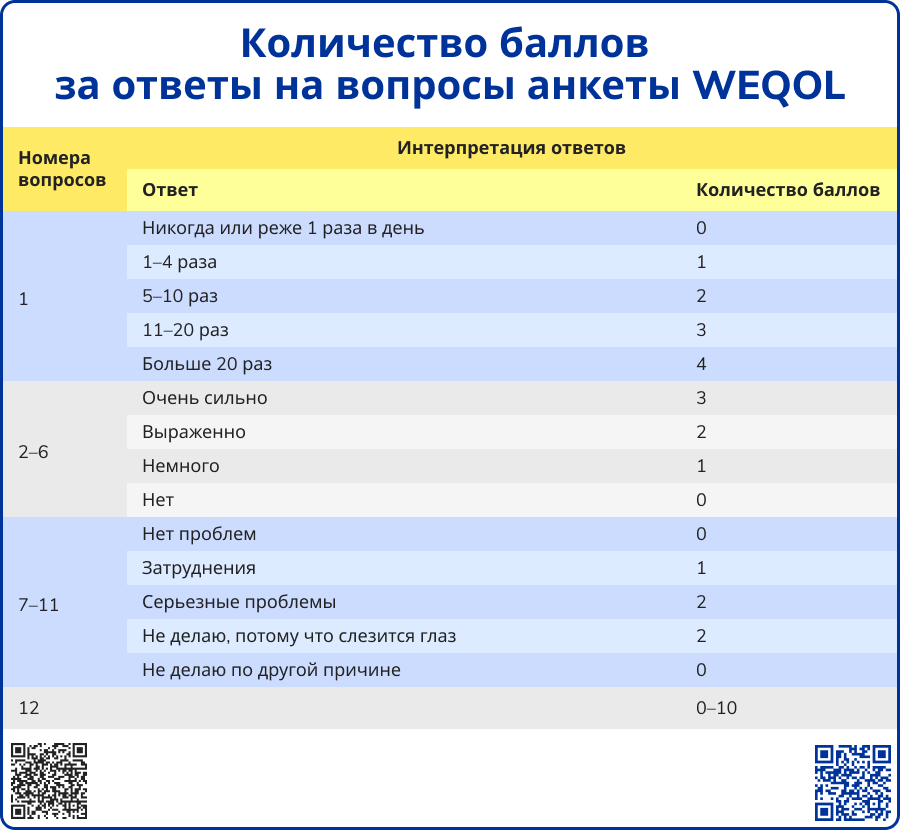 Анкета WEQOL предназначена для оценки качества жизни пациентов с облитерацией слезоотводящих путей.