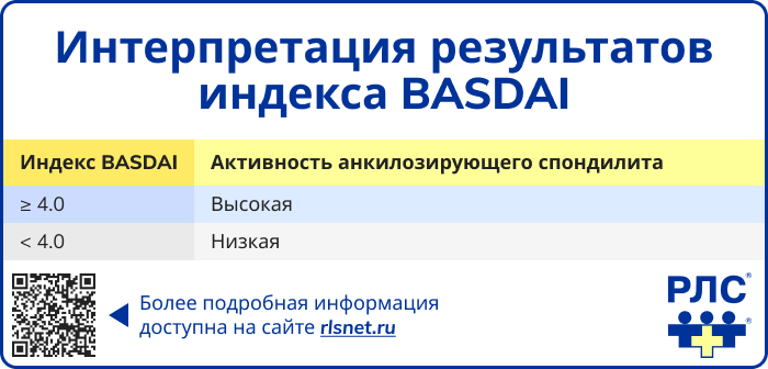 | Индекс BASDAI | Активность анкилозирующего спондилита |