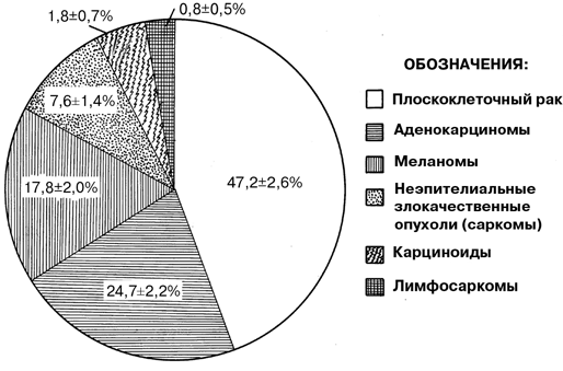 Рисунок 2. Соотношение различных гистологических типов злокачественных опухолей анального канала